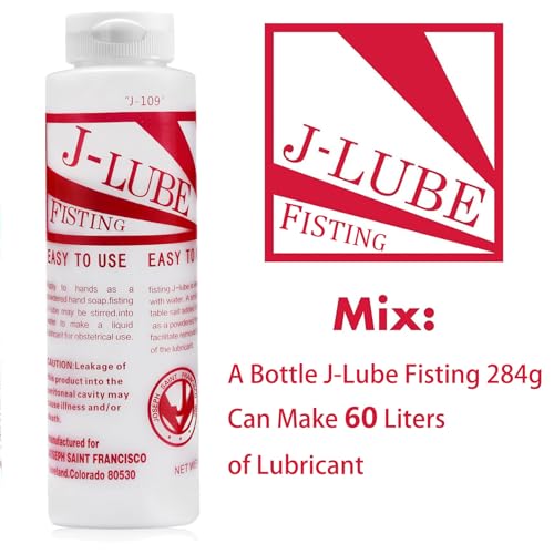 J-Lube Fsiting is a cheap, easy-to-make, latex safe, and incredibly slippery lubricant that is J-LUBE FSITING is much thicker than J-LUBE particularly good for getting large objects up your butt. Simply put, it's a white powder that when added to water makes a great lube. It's mainly used by veterinarians as an obstetrical lubricant (birthing large animals). J-Lube Fsiting is a strange high tech, long chain polyethylene polymer. It takes some practice to get adept in its use,but more than worth the time experimenting to get the perfect blend for you! One 10oz. container of J-Lube makes an amazing 16+ gallons / 60+ litres and more of lube.