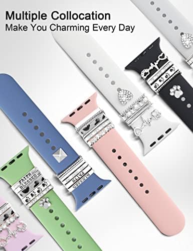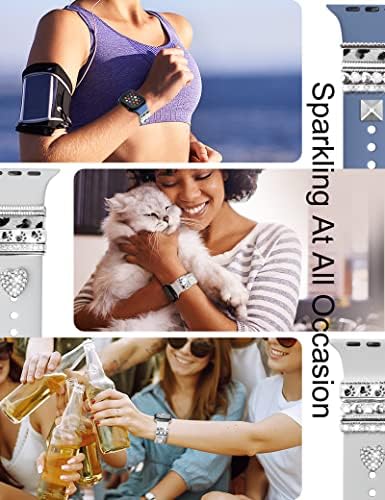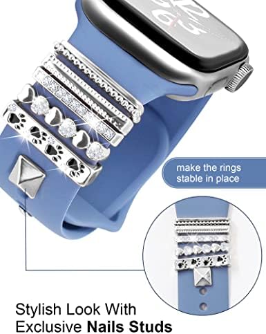 JR.DM 13 Pieces Silver Watch Band Charms with 10-Pcs Decorative Rings Loops & 3-Pcs Classic Clasp, Compatible with Apple Watch 38mm 40mm 41mm 42mm 44mm 45mm Metal Diamond Sliding Strap Accessories for