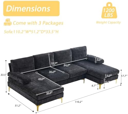 Specificationsof U-Shape Sectional Sofa with Chaises