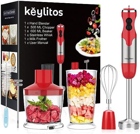 600ML Beaker: Keylitos 5-IN-1 Immersion Hand Mixer also comes with a BPA free beaker to enhance your convenience. Ideal for juice, smooth soups, thick mayonnaise, smoothies, baby food, etc.