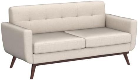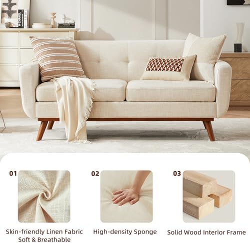 Kingfun 65" W Loveseat Sofa, Mid Century Modern Decor Love Seat Couches for Living Room, Button Tufted Upholstered Furniture, Solid and Easy to Install Small Couch for Bedroom, Beige