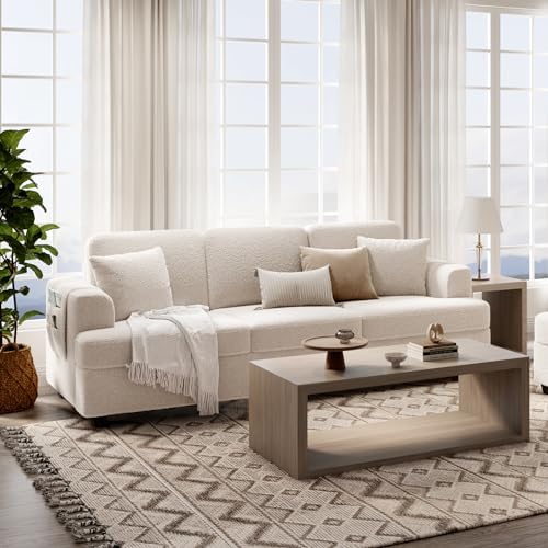 KKL Deep Seat Sofa 89 Inch with Throw Pillow, Modern Sofa, Couches for Living Room, Comfy Sofa, Sleeper Couch, Bouclé, Offwhite