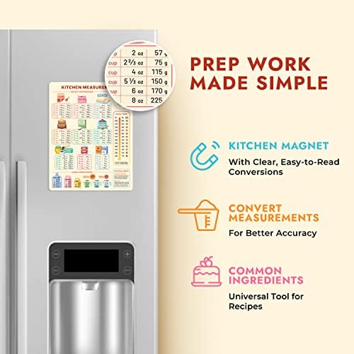 Don’t resort to rough estimates and risk a flattened souffle or a sauce with unbalanced flavors. Get the answer to your kitchen needs with one quick look at your refrigerator door.