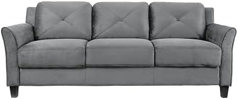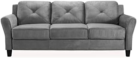 I live in a household with four kids under 10, five dogs, and three cats.Furniture simply doesn’t last for me. Couches last roughly two years before they are stained and smell horrible.Knowing this, and with the expenses related to the upcoming holiday season, I was not ready to go out and spend another $2k on a set of couches.I found this couch on Amazon and honestly wasn’t expecting much at all.After a discussion with my wife, we decided to give this couch a shot because we figured if it at least lasted us until the new year (three months), it would be worth it.The couch arrived within a week and was delivered by UPS.When we first saw the box sitting on our front porch, we were a little worried that this thing was going to be incredibly small.We took the 100lb box into our living room and opened it up.We were both immediately impressed of how they fit all the pieces of the couch in the small box.Additionally, everything was wrapped and well protected.Assembling the couch was straight forward.No tools were required, but it did take two people to put the couch together.I suppose one person could put it together, but two people will make the assembly process a lot easier, and sturdier.Assembly took about ten minutes.The first impressions of the couch were very positive.The couch was bigger then the box suggested (it’s still relatively small), the microfiber feels a lot better than what we were expecting, and the overall appearance of the couch makes it look like it cost a lot more than what we paid for it.One of the biggest surprises with this couch is the fact that the back fabric and the fabric on the bottom of the couch are secured by velcro and not staples.Unless you have messy people living in your house, you won’t understand how big of a deal this is.If the black fabric on the bottom is stapled, it is impossible to ever get all the crumbs, crayons, and other nasty garbage out of the couch that finds its way down there without ripping away the fabric.The cushions are all attached to the couch, but stuff can still fall down between the back of the couch and the bottom cushions.The couch is also relatively light and slides easily on laminate flooring.Compared to heavier couches, this makes cleaning under the couch super easy.Now instead of only moving the couch once a month to clean under it, we move it every time we clean the living room.As for how comfy the couch is, it is a bit firm, but I enjoy it.The arms of the couch do not have much padding, so a couple throw pillows will help out immensely.I am 6’1”, 165 lbs and have not problem laying on the couch.As such, it is the perfect size for me, my kids, or pets.If there is one problem with this couch, it would be that it is anything but “dark grey” on color.Honestly, after a month I still don’t know how to describe the color.It’s more of a blue, or perhaps green, depending on the light.It didn’t match the dark grey laminate flooring, but we have grown to actually like the color.In conclusion, we weren’t expecting much.We were very surprised with the quality of the couch and are in the process of acquiring the matching chairs and loveseat.For less than the price of one traditional sofa, we will have a complete living room seat.It’s amazing, actually.The only thing that would make the Harrington collection better is if they made matching ottomans for the chairs.6 MONTH UPDATE;The kids have stained the couch with an assortment of nasty stains, but the couch itself is still holding together as good as the day we put it together.This is really something considering I have a three year old and a four year old that are constantly jumping on it. While there are stains, there are no rips in the fabric.Really impressed with this thing.