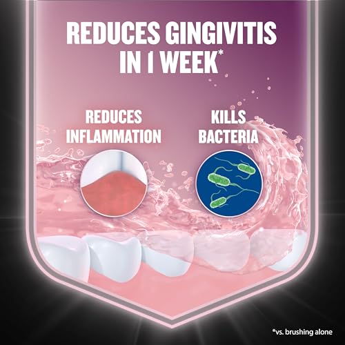 Take care of your gums with Listerine Clinical Solutions Gum Health Antigingivitis & Antiplaque Antiseptic Mouthwash. This antigingivitis rinse from the #1 dentist-recommended mouthwash brand helps prevent plaque buildup and reduce gingivitis in just one week versus brushing alone. Tested by dentists and dental hygienists, this oral rinse immediately kills the germs that cause bleeding gums and inflammation. The ADA-accepted zinc infused mouthwash contains effective ingredients that help prevent buildup on teeth and reduce plaque below the gumline.* In fact, with continual use, this dental mouthwash helps maintain healthy gums for 12 weeks*. Formulated with eucalyptol, menthol, and thymol, the oral rinse has a refreshing mint flavor. Adults and children 12+ should use the antiplaque mouthwash twice daily after brushing with toothpaste as part of their oral care routine. Vigorously swish 20 mL mouthwash at full strength between teeth for 30 seconds & then spit out. *versus brushing alone