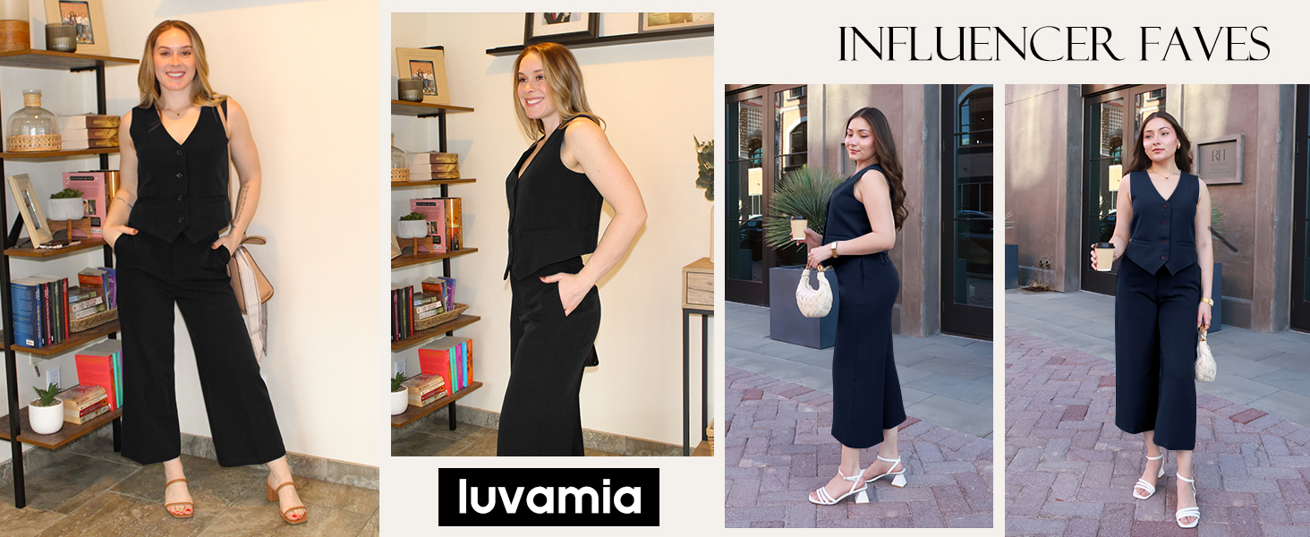 luvamia Wide Leg Sets Women 2 Piece Outfits Dressy Pants Suits for Women Dressy