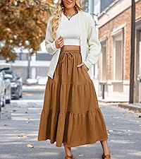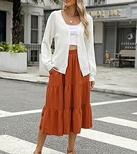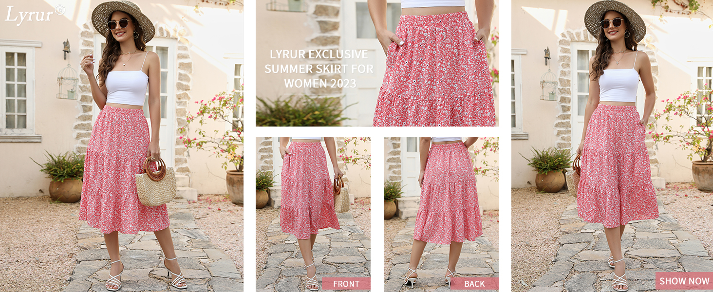 Lyrur Women's Summer Midi SkirtFits True to Size: This Women's Skirt Fits True to Size as it is Elastic Waist Design,It is Suitable for any Body Types. The Casual Summer Skirt is Light Weight, Good Choice for Vacation,Holiday,Casual Wear or Chruch.