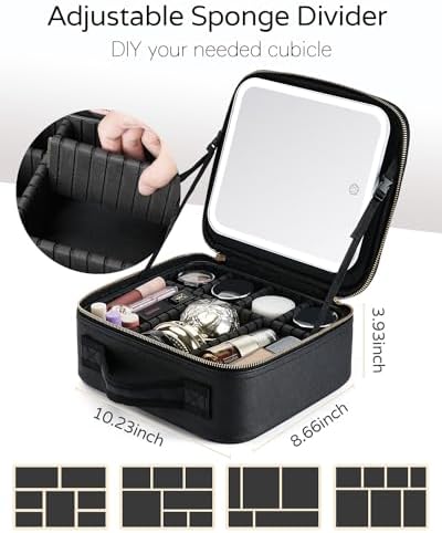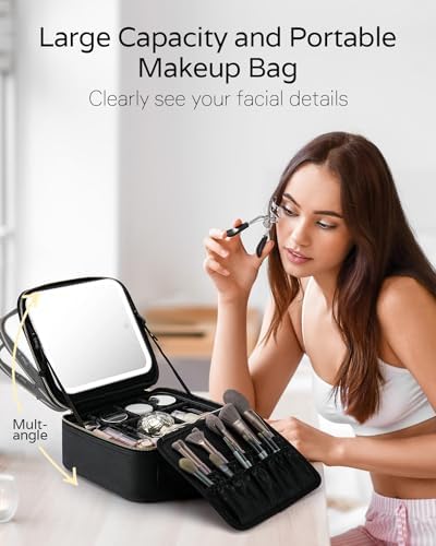 Travel Makeup Bag Cosmetic Bag Makeup Organizer Bag with Lighted Mirror 3 Color Scenarios Adjustable Brightness, Illuminate Your Beauty Routine with Our Makeup Case With Lighted Mirror.