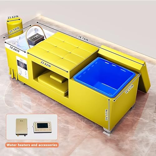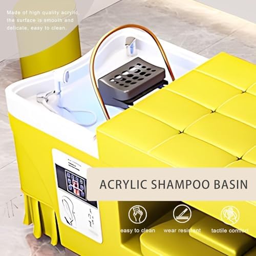Massage Shampoo Bed-Shampoo Bed Includes U-Shaped Acrylic Shampoo Basin,Head Spa Equipment & Facial Beauty Bed with PU Seat(with Water Heater,Water Cycle,Yellow)