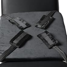 Included with the couch are a pair of wrist and ankle restraints! Crafted from soft fleece, these restraints offer user-friendly adjustability and attach seamlessly to nylon straps that connect to the couch's base.