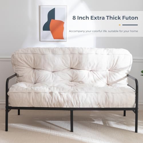 - Experience the soft, comfort of our 8" thick futon, crafted with high-quality boucle fabric.