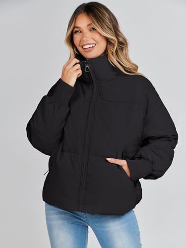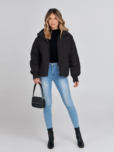 MEROKEETY Women's 2024 Winter Long Sleeve Zip Puffer Jacket Pockets Baggy Short Coats