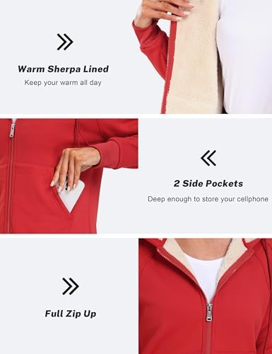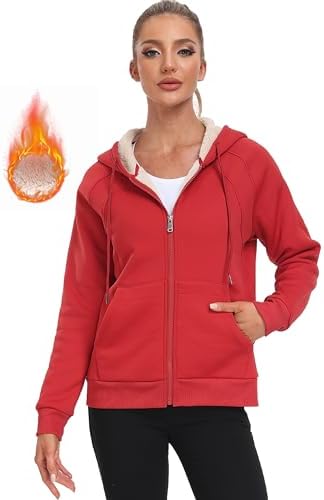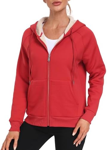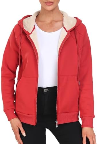 MoFiz Women's Fleece Zip Up Hoodie Warm and Cozy Sherpa Lined Sweatshirt Winter Hoodie Jackets for Women with Pockets