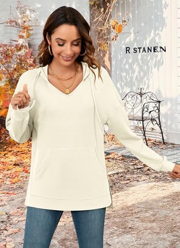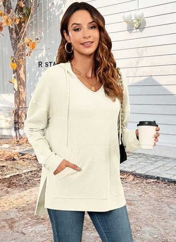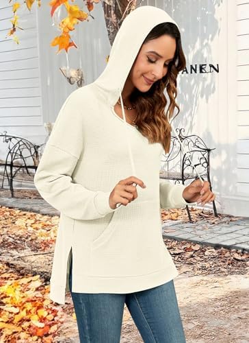 MOLERANI Hoodies for Women 2024 Casual Long Sleeve Waffle Knit Drawstring Side Split Pullover Sweatshirts with Pocket