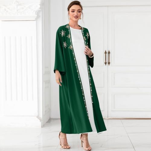 • Features: Long Sleeve, Solid Color, Rhinestones/ Pearls/ Sticks, Open Front, Ankle Length, Loose Fit, Modest Style