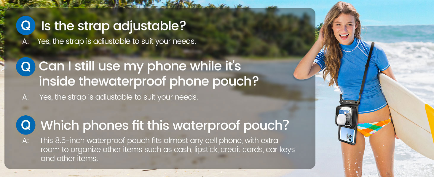 We are taking a trip to Europe and will be doing various activities in the water, and I was worried about our phones getting damaged. My other concern is finding a pouch that would be thick enough to fit my iPhone 14 Pro Max with an OtterBox cover and a pop socket. The add-ons on my phone make it thicker than your regular phone. I put my phone in this pouch and it fit perfectly, it’s completely waterproof and you can still swipe even after it’s been wet. Because my phone has an extra lens it did switch back-and-forth between lenses when trying to take a photograph. It’s a minor stutter of the lenses. But overall I would recommend this , because it has the additional waterproof pouch that you can put additional items it’s easy to use. It’s great quality and definitely performs well for the price.