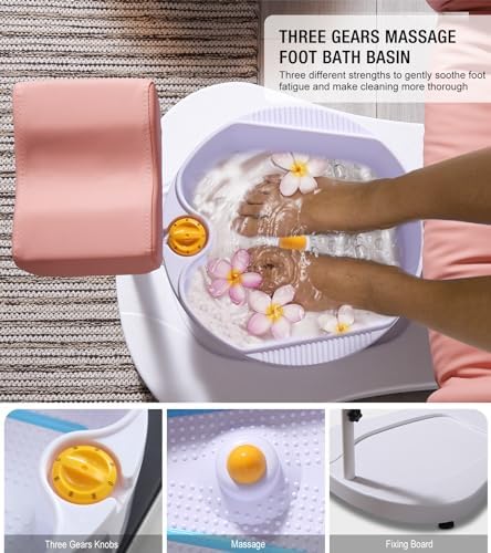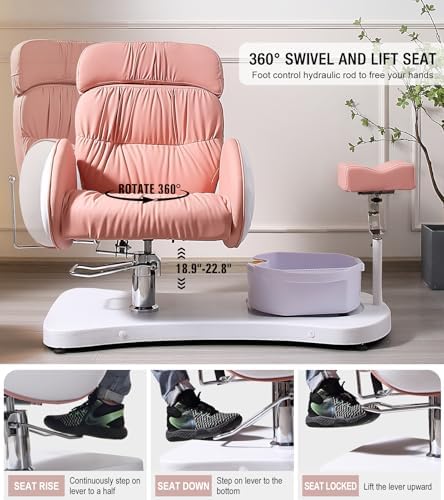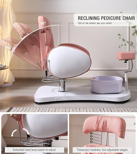 OKAKOPA Pedicure Foot Spa, Hydraulic Pedicure Chair for Nail Tech No Plumbing, 360 Swivel Reclining Pedicure Unit Station w/Bowl and Footrest, Pink
