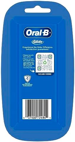 Oral-B Glide Pro-Heath Comfort Plus Floss is tough on plaque yet gentle on gums. Oral-B Glide slides up to 50% easier in tight spaces compared to regular floss while effectively removing plaque between teeth and below the gumline. This strong, smooth, and shred resistant floss provides a fresh minty clean feeling after use. Oral-B is the #1 Dentist Recommended Floss Brand. Recycle the plastic floss case using the Recycle on Us program (recycling.oralb.com). Carton is recyclable. Smile with confidence and feel the Glide difference! Satisfaction Guaranteed, or your money back. For guarantee, call 1-877-769-8791 within 60 days of purchase with UPC and receipt.