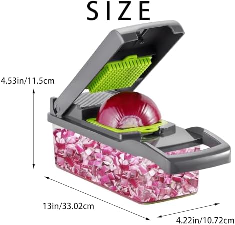 Ourokhome Vegetable Chopper Onion Cutter, 12 in 1 Professional Mandoline Slicer for Kitchen, Multifunctional Food Chopper for Potato, Tomato, Veggie with Strainer Basket, 8 Blades, Gray