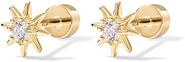 PAVOI 14K Gold Plated Solid 925 Sterling Silver Post Flat Back Stud Earrings for Women | Cartilage Helix Piercing | Cubic Zirconia Earrings