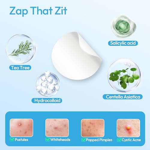 Pimple Patches for Face, Hydrocolloid Acne Patches, Zit Patches for Day and Night Invisible with Tea Tree, Salicylic Acid & Cica Oil-280 Patches,5 Size,2 Thickness