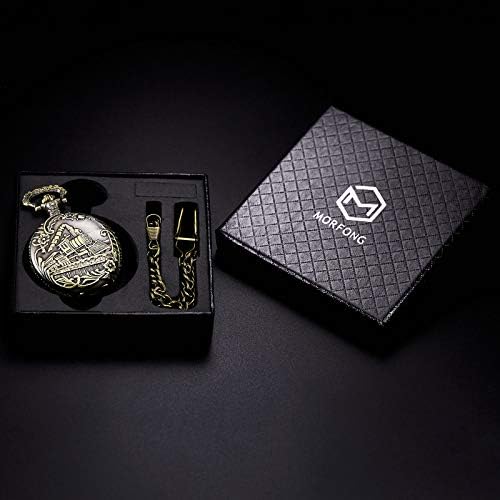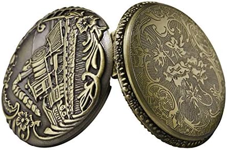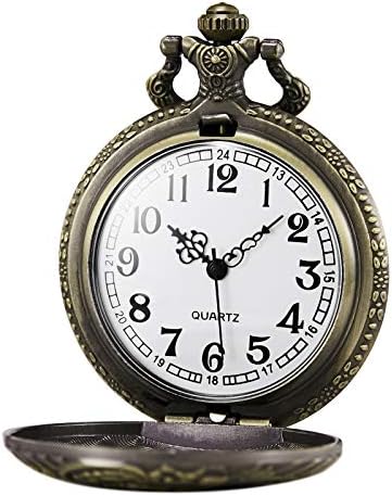 Features: 1.Vintage bronze pocket watch is the best gift for your family, seniority and your friends 2.100% brand new with excellent workmanship 3.Elegant design with precise quartz movement 4.Dial color in white with arabic numerals in Black could see time clearly 5.Removable key chain with a clip at the end, long necklace for wearing the pocket watch as pendant 6.Nice addition to a formal or casual dressing or collectingHow to use/set quartz pocket watch? Press the crown at the top of watch, the front plate will open. Pull the crown away from base of the watch and turn the crown clockwise until reaching the exact time. Specification (1 cm=10 mm=0.394 inch) (approximate) Case diameter: 47mm(1.85") approx. Case thickness: 14mm(0.55") approx.(cover included) Case Material: Alloy Chain Length: 360mm(14.17") approx. (hook included)Necklace Length: 80mm(31.52") approx. (hook included) Chain & Necklace Material: Alloy Package Included: -1 x Pocket Watch -1 x Gift Box1 x User Manual -1 x Chain1 x Necklace