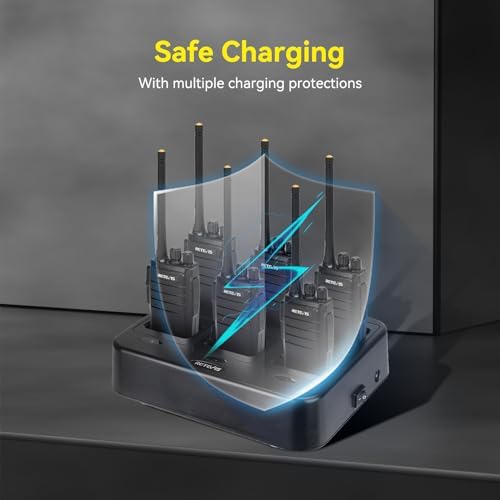 Equipped with 6 way gang charger and charging 6 pack walkie talkies together to save time for your business