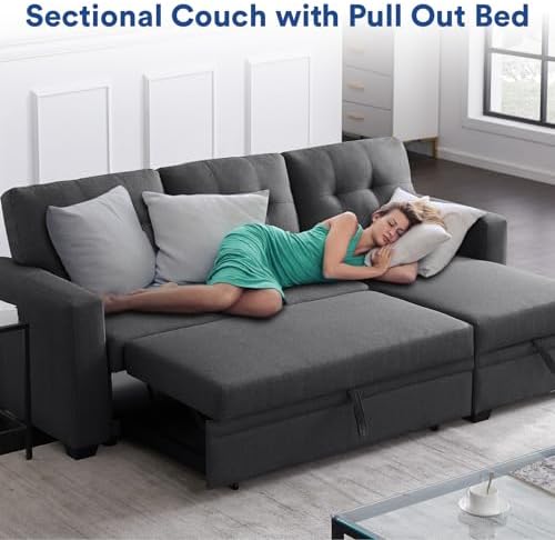 Rovibek 4-in-1 Convertible L Shaped Couch with Pull Out Bed and Storage Sectional Sleeper Sofa with Reversible Chaise for Living Room, Apartment, Bedroom, Office, Charcoal Grey