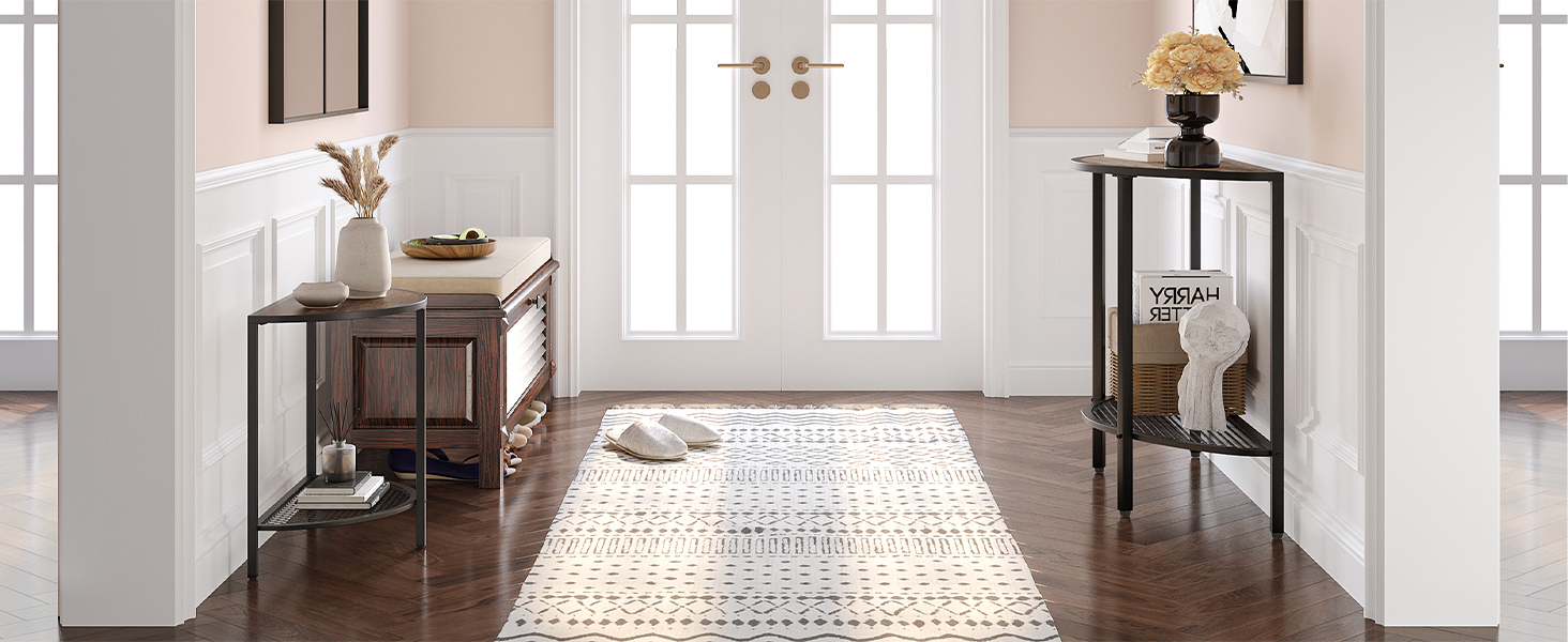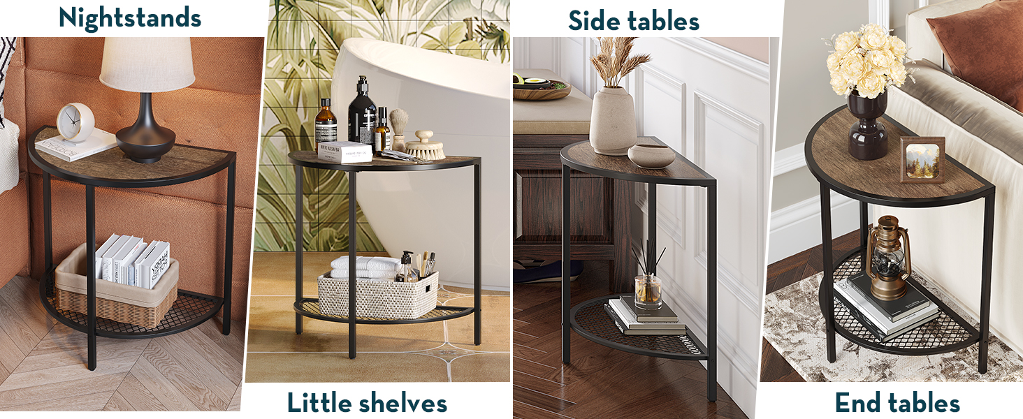 Customer Reviews 4.5 out of 5 stars 486 4.7 out of 5 stars 14 4.6 out of 5 stars 418 4.7 out of 5 stars 33 4.6 out of 5 stars 868 4.5 out of 5 stars 486 4.5 out of 5 stars 486 Price $49.99 $59.95 $59.98 $59.99 $65.99 $69.99 $65.98 Particularity Open Space Design Unique Raised Edge Design Half Moon Design Cream Stone Marble Marble Like Spacious Open Space Design Spacious Open Space Design Color Dark Walnut Brown Dark Walnut Cream Marble White Marble OAK White Gray Top Size 15.7"D x 31.5"W x 17.7"H 23.6"D x 23.6"W x 18.7"H 36.22"D x 11.81"W x 31.5"H 27.6"D x 27.6"W x 17.7"HThis little wall was needing a table. I searched for months and came across this and decided why not. It fits my wall perfectly. Opened the box laid everything out, and put it together myself in 9 mins. So easy.
