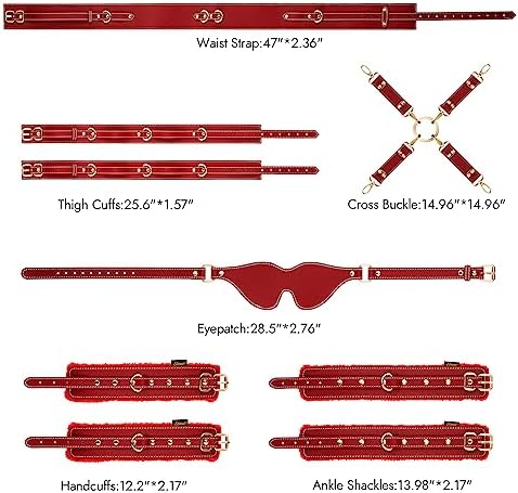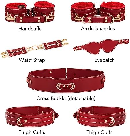 Where do I start?This is a great kit!!!Soft wrist and ankle strapsVelcro fastening for safetyStrong leather fastenings, rings andClipsMany options for different positions.Will be trying them all but we already have a favorite.Lots of extras so larger persons can enjoy themselves comfortably. (Quite considerate of the manufacturers - makes me VERY happy)We bought the black set. Beautiful with the gold metal in contrast.This restraint kit is FANTASTIC.The criss-cross binding for wrists and ankles across my back feels so amazing:I'm helpless, on my knees, but still can struggle . . . struggle. . and struggle.Needless to say, my partner loves it (and so do I).Can hardly wait to try - use - other confining positions.And by the way, the straps in the criss-cross have clips on both ends.This is a great safety feature.If I need to get out of the restraint without help, I can reach and undo any clip, behind my back.It's a terrific toy.Definitely add it to your cart; you won't be sorry.