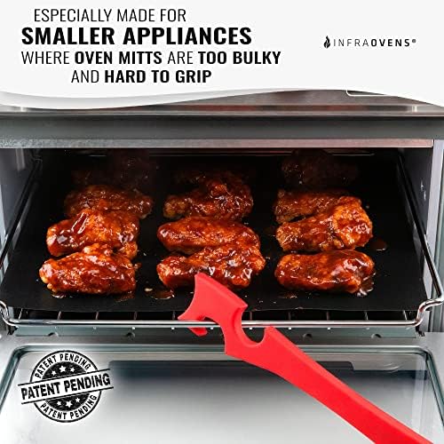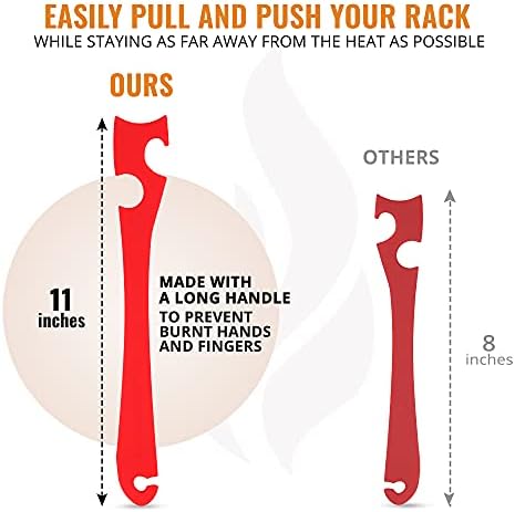 Use the pulling part of your tool to easily pull your racks towards you while avoiding the heat on your face.