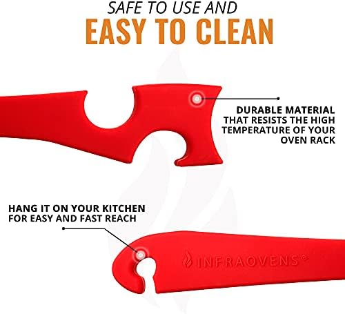 Once your oven is preheated, you can push the hot rack inside with ease, not having to go through the hassle of putting on bulky oven mitts.