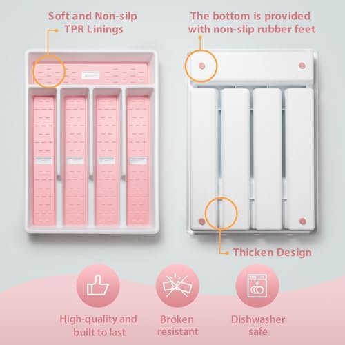 An absolutely perfect fit for my kitchen drawer.Silverware is all tidy and the bright color makes me smile and my silverware easy to see.