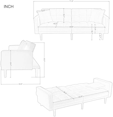 Ksportmf 71.5" Sleeper Sofa Tufted Futon Sofa Bed Modern Folding Loveseat Couch Fabric Convertible Recliner Lounge with Wooden Legs for Living Room,Office,Apartment,Small Places