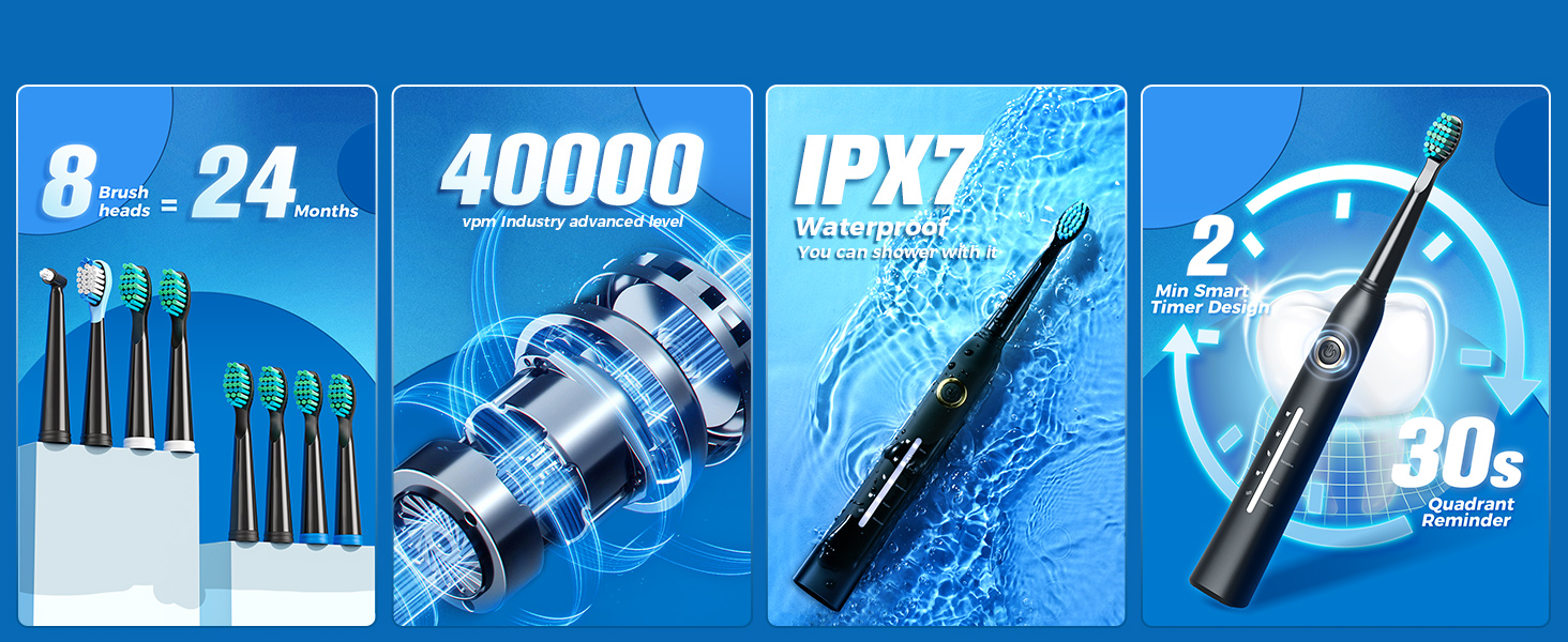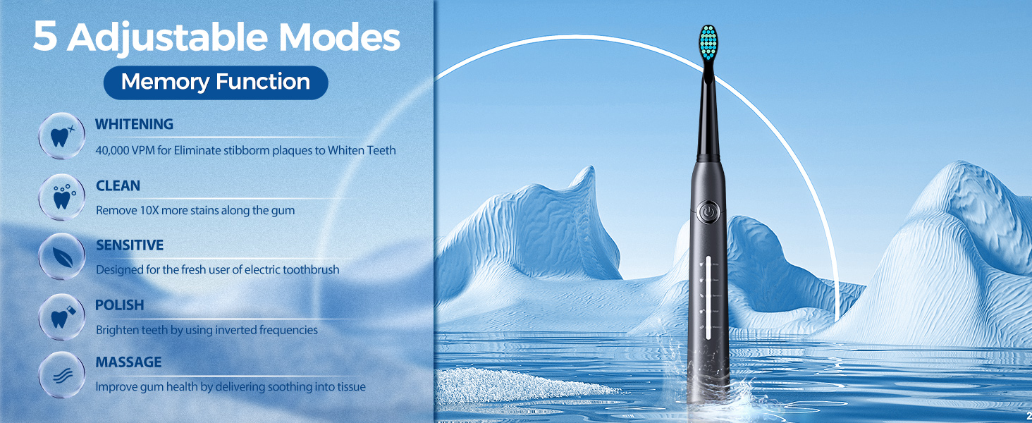 logShoppableMetrics("premium-module-5-comparison-table-scroller", true) Customer Reviews 4.3 out of 5 stars 9,079 4.3 out of 5 stars 3,638 4.3 out of 5 stars 9,079 4.3 out of 5 stars 506 4.3 out of 5 stars 9,079 PriceThis toothbrush offers a great combination of convenience and performance. The inclusion of 8 replacement brush heads ensures you're set for two years, which is a fantastic value. The travel case makes it perfect for those on the go, and the long-lasting 30-day battery life means I don't have to worry about frequent charging. It's super lightweight, which is a bonus when packing for trips. The 5 brushing modes are a standout feature, catering to different cleaning preferences, whether you want a deep clean or a gentle massage for your gums. The smart timer is incredibly helpful, making sure I brush for the right amount of time without having to think about it. Overall, it's a sleek, efficient toothbrush that delivers on both functionality and design.