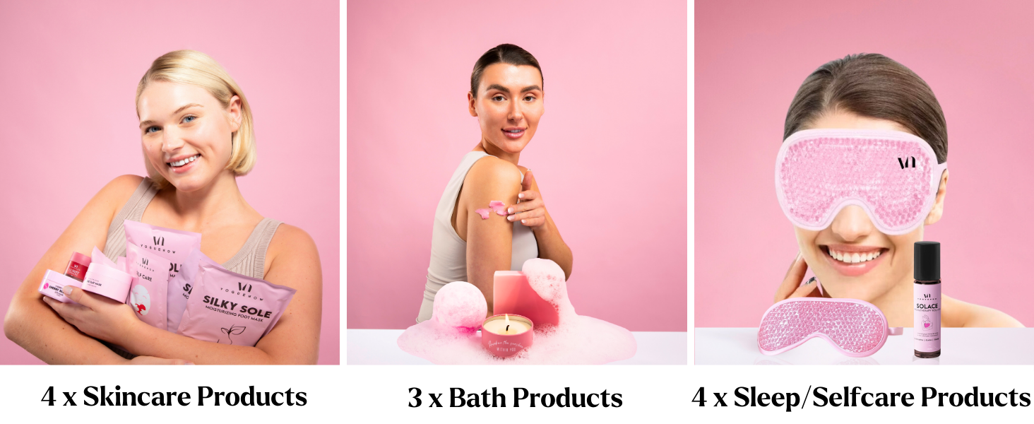 A thoughtfully curated care package of self care items for women to release your stress from head to toe and provide ultimate nourishment and care. We created a complete bundle of Skincare, Self-care, Bath, and Sleep for rejuvenation and relaxation. With this self care and spa kit, you can turn your home into a coziest, comfiest spa retreat with the magical power of self-love and nourish and pamper yourself in the best way possible.