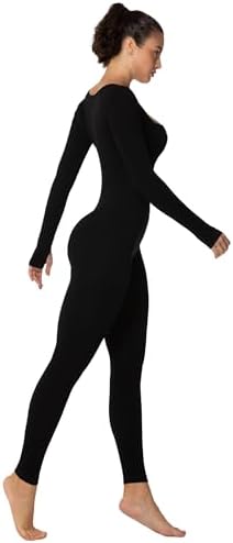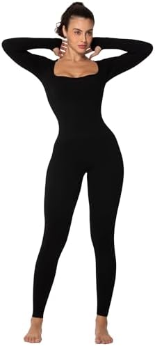 Sunzel Long Sleeve Bodysuits One Piece Jumpsuit for Women with Square Neck and Butt Scrunch Leggings Seamless Ribbed Rompers