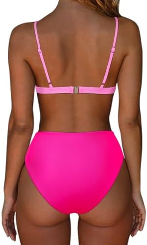 I ordered this bikini for vacation and it turned out really cute! Looks just like the picture, pretty hot pink color. Good material not see through. Only complaint I would have is it’s a little loose on the sides of the top by my armpits, I wish you could tighten the band. Otherwise super cute! I am in between a small and a medium in suits but the small fit perfectly!