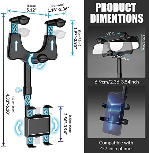 See Details Customer Reviews 3.9 out of 5 stars 5,337 4.2 out of 5 stars 761 3.7 out of 5 stars 213 3.7 out of 5 stars 48 Price $16.99 $13.99 — — Mounting Type Rear View Mirror Rear View Mirror Dashboard, Windshield Dashboard, Windshield Special Features Adjustable Adjustable Adjustable Adjustable Compatible Phone Models All smartphones 4''-7'' All smartphones 4''-7'' All smartphones 4''-7'' All smartphones 4''-7'' Compatible with Vehicle Type Automobile Automobile Automobile Automobile Color Black Black Black Black Brief content visible, double tap to read full content.Full content visible, double tap to read brief content.