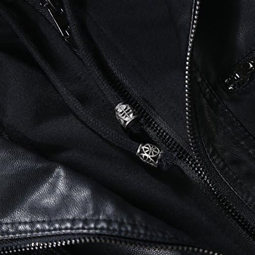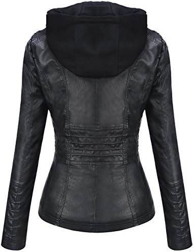 Tanming Womens Black Vegan Leather Jacket Coat with Hood