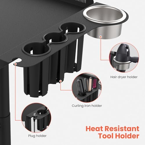 Love the height, tray size, and quality. Easy to assemble. The second tray is so useful. I don’t do extensions but the teeth create a nice barrier around the edges. The magnetic and heat resistant top is awesome. Overall super happy with this cart