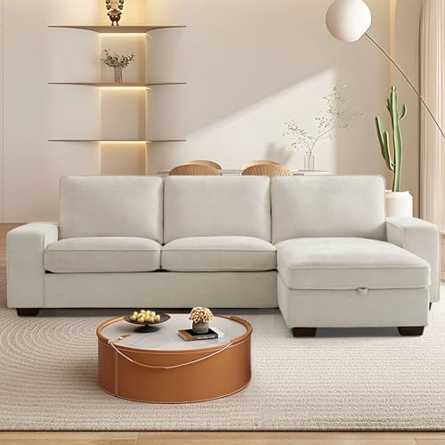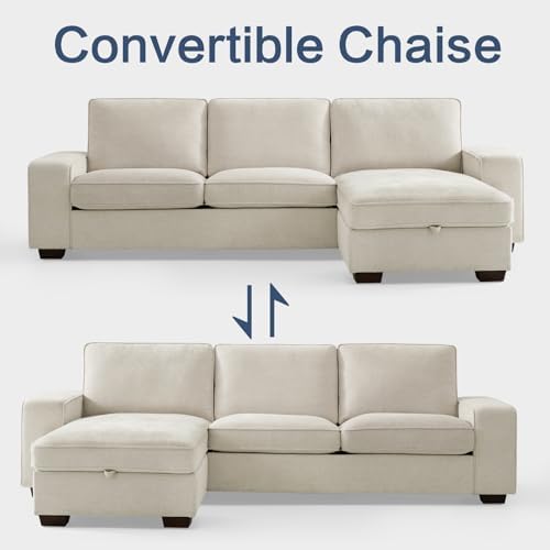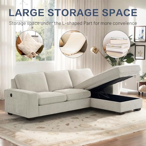 TEKAMON 99" Convertible Sectional Sofa Couch with Chaise Storage, Modern L Shaped Reversible Couch for Living Room, Comfy Chenille Fabric Sofa, Removable Cushion Covers/USB Type-C Ports,Beige