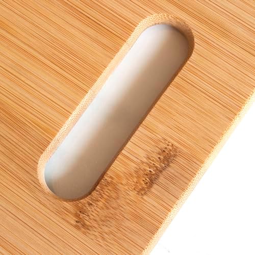 Each piece in this cutting board set is masterfully crafted from natural Moso bamboo to be durable and lightweight. Bamboo is a remarkably renewable resource that quickly re-grows once harvested. The two larger boards also feature a handle cut-out for easy storage and transportation.