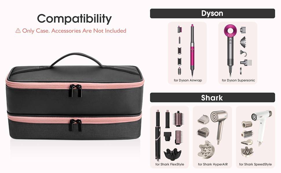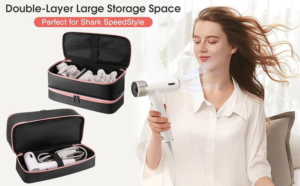 I got this to keepmy expensive Shark Flexstyle hair dryer in. It is a perfect fit, and has room for all the attachments and even some additional hair care items! Very roomy with separate compartments for the dryer, and the attachments/accessories. I love it, it’s easy to use, stores my Shark nicely, and looks great!