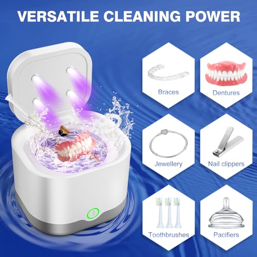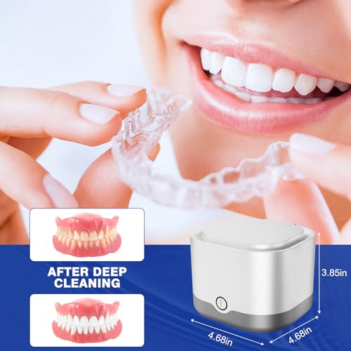 I must say, it's exceeded my expectations! This little powerhouse has transformed the way I clean my dental appliances and precious gems.Firstly, the design is sleek and compact, fitting perfectly on my bathroom countertop without taking up too much space. The operation is incredibly simple; just fill it with water and add a drop of cleaning solution, then let the ultrasonic waves work their magic.I've been amazed at how effectively it removes stubborn stains and buildup from dentures. After just one cycle, they come out looking and feeling as good as new, with no need for scrubbing or soaking.But the real surprise came when I tried it on my jewelry. I've always struggled to keep my rings and necklaces looking shiny, but this cleaner has made it effortless. Even intricate pieces with tiny crevices are thoroughly cleaned in a matter of minutes, restoring their brilliance.In terms of noise level, it's surprisingly quiet considering its powerful cleaning capabilities. I can run it in the background while getting ready in the morning without any disruption.Overall, I can't recommend this Ultrasonic Cleaner enough. It's efficient, easy to use, and delivers exceptional results every time. Say goodbye to tedious cleaning routines – this little gem does all the hard work for you!