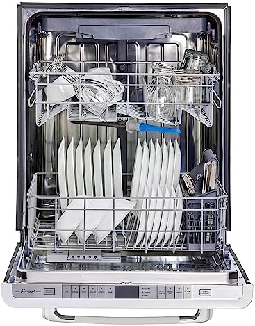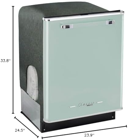 The Classic Retro Built-In Dishwasher by Unique Appliances is a seamless solution to the hassle of cleaning up after meals. With its top control panel, audible end-of-cycle signal (on/off), and an array of wash cycles including Heavy, Auto, Normal, Delicate, Quick, and Rinse, along with options like Sanitize, Hi-Temp, Heated Dry, Extended Dry, and Delay Wash 2-4-8 Hours, this dishwasher offers tailored efficiency. Despite the design of our dishwasher machine, which features a third-level utensil rack, height-adjustable second rack, modular utensil basket, and stainless steel tub, it can accommodate up to 14 place settings to maximize the load. Operating at a quiet 45 dBA, our dishwasher ensures uninterrupted tranquility, even during hard-food disposal. The iconic retro design of the dishwasher, complemented by chrome-finished accents, evokes a '50s charm. There is also LED lighting in the interior. A perfect marriage of functionality and aesthetics, this is one of the best built-in dishwashers you will come across. Pair with a Classic Retro Fridge or Range by Unique Appliances to add the finishing touch to your kitchen decor!