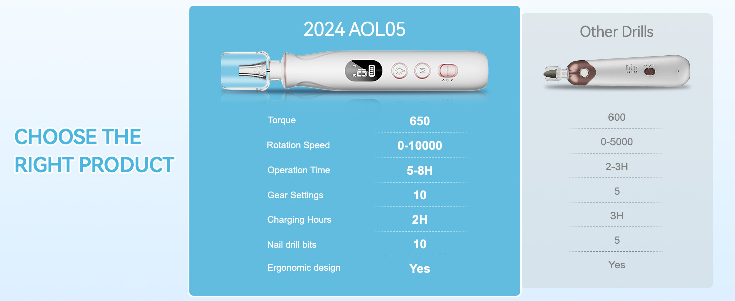 Material ASA, Stainless Steel Model Name AOL05 (5th Gen) Power Source Battery Powered Product Dimensions 1.5"L x 1.5"W x 6"H Special feature Lightweight, Cordless, USB Reachargeable Specific uses for product Cordless Nail drill Kits, Professional Manicure Pedicure Kits