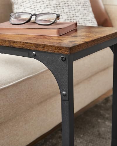 We eat most of our meals in the living room and had been using folding TV dinner tables but they were so bulky and ugly and I wanted something that didn't take up as much space but was still big enough to use. These really exceeded my expectations, especially for prefab furniture. They were extremely easy to put together, no extra tools needed besides the included allen wrench, and they are so sturdy. I wasn't expecting how heavy they would be. They're much more stable than the old tables, they have a sleek design, and they're heavy duty. My pets can't knock into them and cause drinks to fall like with the old tables and I really like how they can be shoved under the couch so they're not sitting out in the room when not being used. I also love the design. The wood is thick and each table has unique wood grain and staining patterns so they're not matchy matchy. The metal has a very industrial look but there were no scratches or dents in the coating. The only issue was some of the pieces slightly overlapped when they were placed, like they weren't cut evenly, but it's minute and not noticable unless you flip the table over and really look at the edges. They're also pretty short. Unless you have a short couch with thin arms, these can't go over the arms like shown. This isn't an issue for me because I didn't want to use them that way but if it is what you're looking for these may not be for you. Overall this was an excellent purchase and I'm very happy with them.