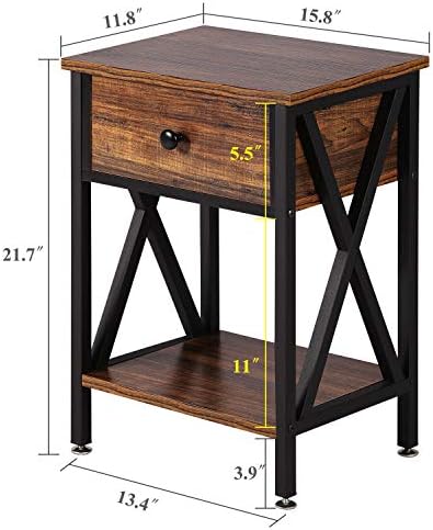 This bedside table is designed to be robust. Constructed from high-quality materials and X shape metal frame, it has a weight-bearing capacity of up to 50 pounds.