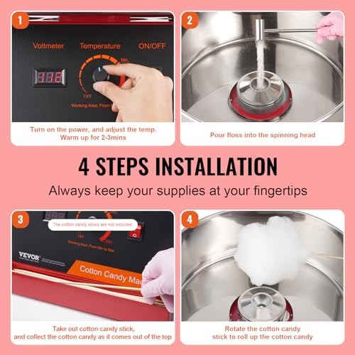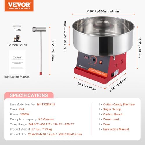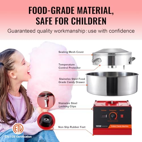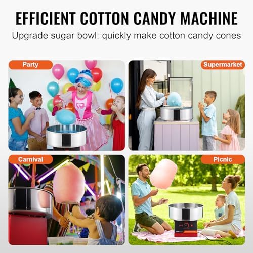 VEVOR Cotton Candy Machine Commercial, 1000W Electric Floss Maker with Stainless Steel Bowl, Sugar Scoop, Storage Drawer, Perfect for Home, Carnival, Kids Birthday, Family Party, Red